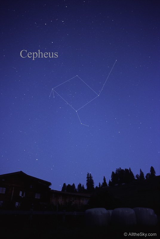 제왕 세페우스는 북반구의 카시오페아자리와 드라코자리 사이에 위치하고 있습니다.